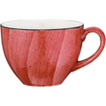Tekopp i rød farge fra serien Aura Passion fra Bonna. En håndmalt porselensserie med flere fargevarianter som hjelper til med å skape en avslappet atmosfære. Tekopp Passion Rita passer fint til fatet CTAPSRIT01.