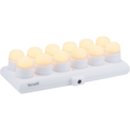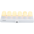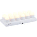 LED telys sett med 12 oppladbare LED-lys og ladestasjon som kan monteres på vegg. Koselige LED telys i varmhvit med 2-trinns dimmer – et smart alternativ til telys med opptil 40 timers brenntid.