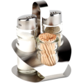 Salt- og pepperkarsystem fra serien Pro fra APS, komplett med tannpirkere. Utstyrt med mattpolert glassbeholder og lokk i rustfritt stål med skrulokk, noe som gir en moderne og stilren presentasjon. Perfekt for restauranter og kafeer som ønsker å kombinere funksjonalitet og eleganse. Hold krydderne og tannpirkerne lett tilgjengelige og ferske.