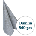 Gråmønstrede Dunilin® servietter fra Duni, laget av sertifisert råvare. Serviettene er enkle å brette og holder formen lenge. Materialet ser ut og føles som tekstil, noe som gir bordet et ordentlig løft.