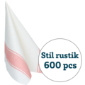 Stil Rustik er en serie med myke papirservietter som har en lin-lignende følelse. Servietten har en klassisk og rustikk stil som ser flott ut på bordet. Enkle foldingsteknikker fungerer også godt, til tross for at servietten er myk.