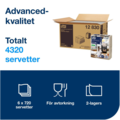 Dispenserservietter i helformat som er innovativt brettet, noe som gir plass til flere og gjør at de varer lenger. Tork N14 - Xpressnap Fit® Natur Dispenserserviett er laget av resirkulert papir og inneholder verken blekemidler eller fargestoffer.