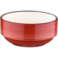 Rund rød skål fra Aura-serien fra Bonna. En håndmalt porselensserie med flere fargevarianter som er med på å skape en avslappet atmosfære. Bowl Passion Joker er en praktisk stabelbar skål som passer til alt fra rør til småretter.