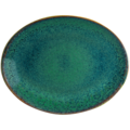 Oval tallrik ur serien Ore Mar från Bonna. En porslinsserie med färgad glasyr i vackra gröna nyanser som skapar en harmonisk atmosfär. Med tallrik Moove blir det enkelt att komponera rätterna på ett unikt sätt.