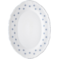 Oval tallrik ur serien Verona Valbella från G.Benedikt. Tallriken har ett vackert blått mönster på kanten som kallas Valbella. Tallriken passar att användas på restauranger, hotell och till hemmabruk.