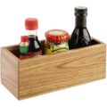 Brunt bordsapotek 23x10 cm fra APS, laget av bærekraftig akasietre, er en stilren og funksjonell løsning for restauranter. Perfekt for å holde krydder, servietter eller andre små tilbehør organisert og lett tilgjengelig for gjestene. Den naturlige treoverflaten bidrar til en varm og innbydende atmosfære.