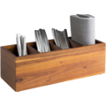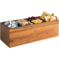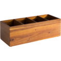 Bordsapotek 36x14 cm fra serien Woody fra APS, laget av bærekraftig akasietre, tilbyr fire praktiske rom for å organisere bestikk, servietter og andre tilbehør. Apoteket er ideelt for restauranter og buffeer der funksjonalitet og stil møtes. Akasietreets naturlige skjønnhet gir et elegant preg til hvert bord.