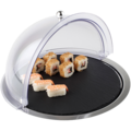 Buffébrett med rolltop fra APS består av tre deler som skaper en elegant serveringsløsning. Settet inneholder et rustfritt brett med en diameter på 38 cm, en naturskiferplate på 33 cm samt et praktisk rolltop-lokk som passer til brettet. Det rustfrie brettet gir en stilfull og holdbar base, mens skiferplaten tilfører et rustikt preg. Rolltop-lokket gjør det enkelt å holde maten fersk og hygienisk, noe som gjør settet ideelt for buffeer og andre serveringstilfeller.