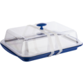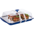 Termobrikke sett blå fra APS inneholder seks deler: en plastbrikke for enkel håndtering, en robust rustfri brikke for stil, to kjølere som holder maten kald, et transparent lokk for beskyttelse og et silikonbånd for smidig transport. Perfekt for bufféer og catering, kombinerer dette settet funksjonalitet med eleganse.