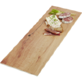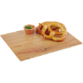 Serveringsfat GN ur serien Oak fra APS med antiglidføtter og lett bølgede kanter som etterligner lys eik. Laget av slitesterk melamin, perfekt for å presentere og servere mat på bufféer med stil og stabilitet!