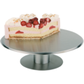 Roterende kakefat på fot Ø 30,5 cm fra APS, laget av rustfritt stål med en stilren og praktisk løsning for servering av kaker og bakverk. Fatet er mattpolert for et elegant utseende og har en roterende funksjon som gjør det enkelt å dekorere og nå hele kaken uten besvær. Den møbelvennlige undersiden beskytter bordflater mot riper og skader, noe som gjør dette kakefatet perfekt for både profesjonelle kjøkken og festlige anledninger. En utmerket detalj for å heve presentasjonen av dine søtsaker!