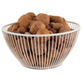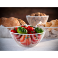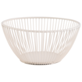 Rund kurv i hvit farge fra APS. Kurven er laget av metall, og den hvite malingen gir den et stilfullt utseende samtidig som den effektivt organiserer og viser frem dine ferske frukter og grønnsaker på en attraktiv måte.