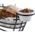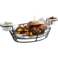 Serveringskurv 39,5x20 cm for hamburgere og pommes frites fra APS, med praktiske holdere for to dippeskåler. Kurven er perfekt for å servere hele måltider på en stilfull måte. Spesialtilpassede dippeskåler kan kjøpes separat for en komplett presentasjon. Ideell for restauranter og kafeer som ønsker å heve sine serveringsopplevelser.