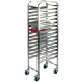Kantinevogn fra APS i rustfritt stål med 15 hyller som kan romme opptil 3 GN 1/2-brett eller 15 GN 1/1-kantiner. Hyllene har en avstand på 75 mm, noe som gir god plass mellom hvert nivå. Vognene er utstyrt med 4 svingbare hjul, hvorav 2 med brems, og har en total lastekapasitet på 100 kg, noe som gjør den ideell for smidig transport i kjøkkenmiljøer.