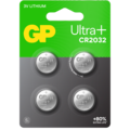 Knappcellebatteri GP Ultra Plus Lithium CR2032 4-pack. Høyytelses og temperaturbestandige litiumbatterier med høy energitetthet. Perfekte for å drive dine spesialenheter i miniatyr, som bilnøkler, fjernkontroller, smartklokker, blodsukkermålere, smart-hjem-utstyr, IoT-enheter samt dør- og vindussensorer.