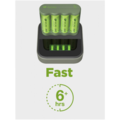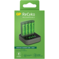 Batterilader B421 fra GP Batteries. Kompakt USB-drevet batterilader med plass til fire AA-batterier. LED-indikatorer viser ladningsnivået, og når batteriene er fulladet, slår laderen seg av for økt sikkerhet. Laderstasjon inkludert.