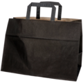 Papirpose Svart Onyx 15L er en elegant bærepose laget av kraftpapir i et eksklusivt svart design. Posens flate håndtak og innbrett gjør den både praktisk og komfortabel å bære. Passer utmerket til take-away og detaljhandel, spesielt i kombinasjon med andre produkter i Onyx-serien.