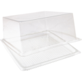 Kvadratisk kakeform med hengslet lokk laget av resirkulert PET. Den gjennomsiktige designen fremhever kaker og bakverk på en elegant måte. En ideell emballasjeløsning for kafeer, dagligvarebutikker, bakerier og konditorier.