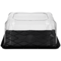 Rektangulær kakeeske med sort bunn og avrundede kanter. Fin å bruke i bakeri og konditori, både ved salg og catering. Esken fremfører kaken på en innbydende og fristende måte samtidig som den gir beskyttelse.