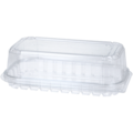 Transparent bakelseform bunn 185x100x20mm laget av RPET. Bunnens RPET-plast gir tydelig beskyttelse samtidig som innholdet vises på en tiltalende måte. Perfekt for konditorier, kafeer og bakerier som ønsker å presentere og beskytte sine bakverk under transport eller lagring.