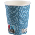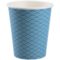 Pappkrus Wave 23 cl er et blått engangskrus med dekorativt bølgemønster, designet for både varme og kalde drikker. Det er laget av kartong med PE-belegg som beskytter mot lekkasje. Kruset er FSC®-mixmerket, noe som betyr at det kommer fra ansvarlig skogsdrift – et godt valg for miljøbevisste virksomheter.