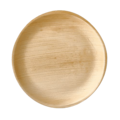 Rund tallerken laget av palmblader med lett hevede kanter. Laget av 100% naturlige palmblader uten tilsetningsstoffer og belegg. Perfekte engangstallerkener til catering, større arrangementer, food trucks og mye mer.