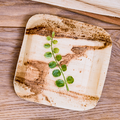 Kvadratiske tallerkener laget av fallne palmblader. Råvaren er 100% fornybar og passer perfekt for deg som ønsker et miljøvennlig alternativ med en litt mer eksklusiv følelse. Disse tallerkenene er også miljømerket med Svanen.