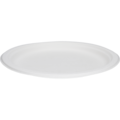 Hvite engangstallerkener med en diameter på 26 cm, laget av 100% fornybar bagasse. Disse tallerkenene er perfekte for store arrangementer og tilbyr enkel servering.