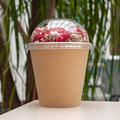 Kupollokk uten hull Ø90 mm er et transparent lokk i PET-plast, spesielt designet for å passe til pappbegre med 90 mm diameter – for eksempel yoghurtbegre. Lokket kan kombineres med et innerlokk med tab, som gir ekstra plass til toppings som müsli, frukt eller andre tilbehør.