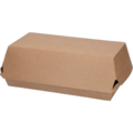 • Rektangulær papir henteboks med PE-belegg 19,5x10,5x8cm. Henteboksene har hengelokk som gjør dem egnet for take away av mat som for eksempel pølse med mos fra restaurant og gatekjøkken.