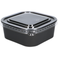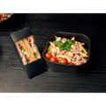 Onyx Matform hever din takeaway med et stilrent svart design som får fargene til å skinne og gir maten et eksklusivt preg. Perfekt for varme retter; formen er laget av kartong med PP-belegg som tåler både fukt og varme – en ideell løsning for en elegant takeaway-servering.