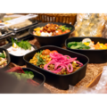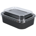 Onyx Matform hever din takeaway med et stilrent svart design som får fargene til å skinne og gir maten et eksklusivt preg. Perfekt for varme retter; formen er laget av kartong med PP-belegg som tåler både fukt og varme – en ideell løsning for en elegant takeaway-servering.