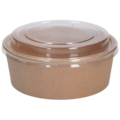 Rund salatskål i naturlig brunt papir med PE-belegg. Salatskålen kommer med tilhørende lokk i samme materiale, som sørger for at kunden får en smakfull og trygg take away. Perfekt for salatbaren og restauranten og kafeen.