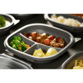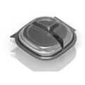 Salatboks & Lokk 3-Roms Vista fra Duni passar för både varm och kall mat. Med sitt moderne design, gjennomsiktige lokk og stilige grå bunn løfter denne boksen det visuelle inntrykket av ethvert måltid. Den grå bunnen kan resirkuleres i motsetning til de tradisjonelle svarte, noe som gjør hele Vista-boksen resirkulerbar!
