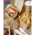 Hamburgerlomme er et praktisk valg for servering og takeaway av hamburgere, smørbrød og annen hurtigmat. Den fettavvisende PE-belægningen beskytter mot lekkasje og gjør lommene behagelige å bruke for kunden – uten søl eller kluss. Perfekt for deg som driver hurtigmatrestaurant, kafé, foodtruck eller cateringvirksomhet.