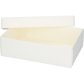 Elegant hvit gaveeske som kan brukes i de fleste sammenhenger som dåp, bryllup og bursdager. Lokket sitter godt på esken. Du kan velge å gi bort esken som den er eller binde et gavebånd rundt for å gi esken det lille ekstra.