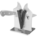 Knivsliper i rustfritt VG2 Professional fra Vulkanus. Knivsliperen tilpasser slippevinkelen automatisk til mellom 11-21 graders vinkel. Dette gjør at sliperesultatet forbedres betydelig mye bedre enn med en vanlig enkel knivsliper.