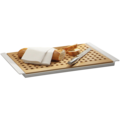 Skjærebrett 52x34 cm for brød fra APS, laget av tre og kan kompletteres med en underplate samt brødbokser for å skape en komplett brødstasjon. Denne praktiske brettets design gjør den perfekt for både skjæring og servering av brød, og den gir et stilrent inntrykk i alle miljøer. Ved å kombinere den med underplaten og brødboksene kan du enkelt organisere og presentere ulike brødtyper på en innbydende måte. Skap en funksjonell og attraktiv brødstasjon som imponerer på gjestene dine!