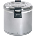 Risvarmer fra Bartscher med ringvarme som rommer opptil 8,5 kg ferdigkokt ris. Utstyrt med ekstra store håndtak for enkel håndtering. Leveres med en risskje og omrøringsskje. Innerkaret er nonstick-belagt for enkel rengjøring og laget i varmebestandig rustfritt stål for holdbarhet.