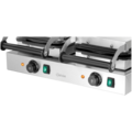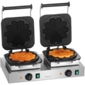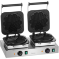 Vaffeljern 2HW211 i rustfritt stål fra Bartscher. Jernet kommer med to bakeplater i hjerteform med høy varmeledningsevne hos bakeplatene i støpejern. De to separate på/av-knappene muliggjør en komfortabel og behovstilpasset bruk.