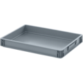 Rektangulært grå plastbrett laget av hardplast utviklet for næringsmiddelindustrien og restaurant. PLASTBOKS 60x40x7,5 cm rommer 12 liter og tåler både varme og kulde. Perfekt for transport og oppbevaring av mat i.