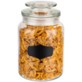 Konserveringsglass med lokk fra APS som er sylinderformet. Lokket har en tetning som gjør at innholdet beholder sin friskhet på en utmerket måte. Det passer godt å oppbevare müsli, cornflakes og kaffebønner i glasset.