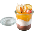 Glasburk med lokk 14 cl fra serien Weck fra APS er den perfekte oppbevaringsløsningen for dine favoritter. Denne elegante krukken er ideell for servering av deilige desserter som mousse, pannacotta og sjokoladepudding. Med sitt stilige design er den også utmerket for å oppbevare mindre tilbehør som crumble og andre delikatesser.