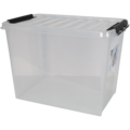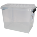 SmartStore Classic 65 - 61L Gjennomsiktig oppbevaringsboks med tilhørende lokk. Oppbevaringsboksene kan stables i hverandre uten lokk og stables oppå hverandre med lokkene på. De solide klipsene holder lokket på plass.