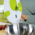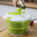 Stabil salatslynge i grønn og hvit farge fra Taylor's Eye Witness. Slyngen er laget av plast og passer perfekt til å tørke blader og rense smuss fra nyplukkede bær og grønnsaker. Den har en non-slip bunn, lokk, integrert tappeventil og en praktisk åpning for å helle på dressing som fordeles jevnt i slyngen. Basen kan også brukes som serveringsbolle.