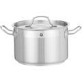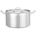 Halvhøy kjele med lokk fra serien Profi Line fra Hendi. Kjelen er laget av 5 mm tykt aluminium med en overflate av rustfritt stål og nitede håndtak i rustfritt stål som ikke blir varme. Lokk med dampventil og sveisede stålhåndtak. Kjelen er enkel å rengjøre da kvaliteten er høy, noe som gjør at den passer for bruk i profesjonelle kjøkken.