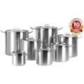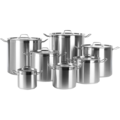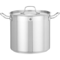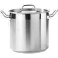 Høy kjele med lokk fra serien Profi Line fra Hendi. Kjelen er laget av 5 mm tykt aluminium med en overflate av rustfritt stål og nitede håndtak i rustfritt stål som ikke blir varme. Lokk med damputløpshull og sveisede stålhandtak. Kjelen er enkel å rengjøre da kvaliteten er høy, og passer derfor til bruk i profesjonelle kjøkken.