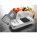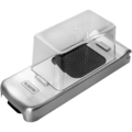 Løkknuser-/skjærer fra Alligator forenkler matlagingen din ved effektivt å finhakke ingredienser som hvitløk, ingefær og løk. Den er utstyrt med tre utskiftbare knivsett som gjør det enkelt å tilpasse hakking etter dine behov. Den standard oppsatsen på 6 x 6 mm passer perfekt for løk, mens knivgitteret på 12 x 12 mm er ideelt for pommes frites. I tillegg finnes det et knivsett på 3 x 3 mm for å finhakke hvitløk eller ingefær.