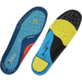 Innleggssåle for høyt fotbue, tekstil, myk E.V.A, elektrisk ledende polyestertråd, kontrollstang i TPU, doble støtdempingssoner i Poron® XRD®, blå, svart, hæl/hulfotsstøtte, godkjent for bruk i alle JALAS® vernesko, anatomisk utformet.
