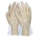Engangshansker i one size laget av LDPE med prikket overflate og klar farge. Godkjent for håndtering av alle typer matvarer, inkludert fet mat. Enkle å ta av og på, perfekte for bruk i miljøer der det er behov for hyppig bytte av hansker.